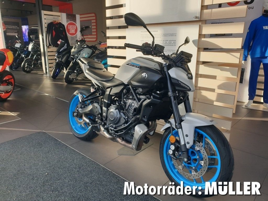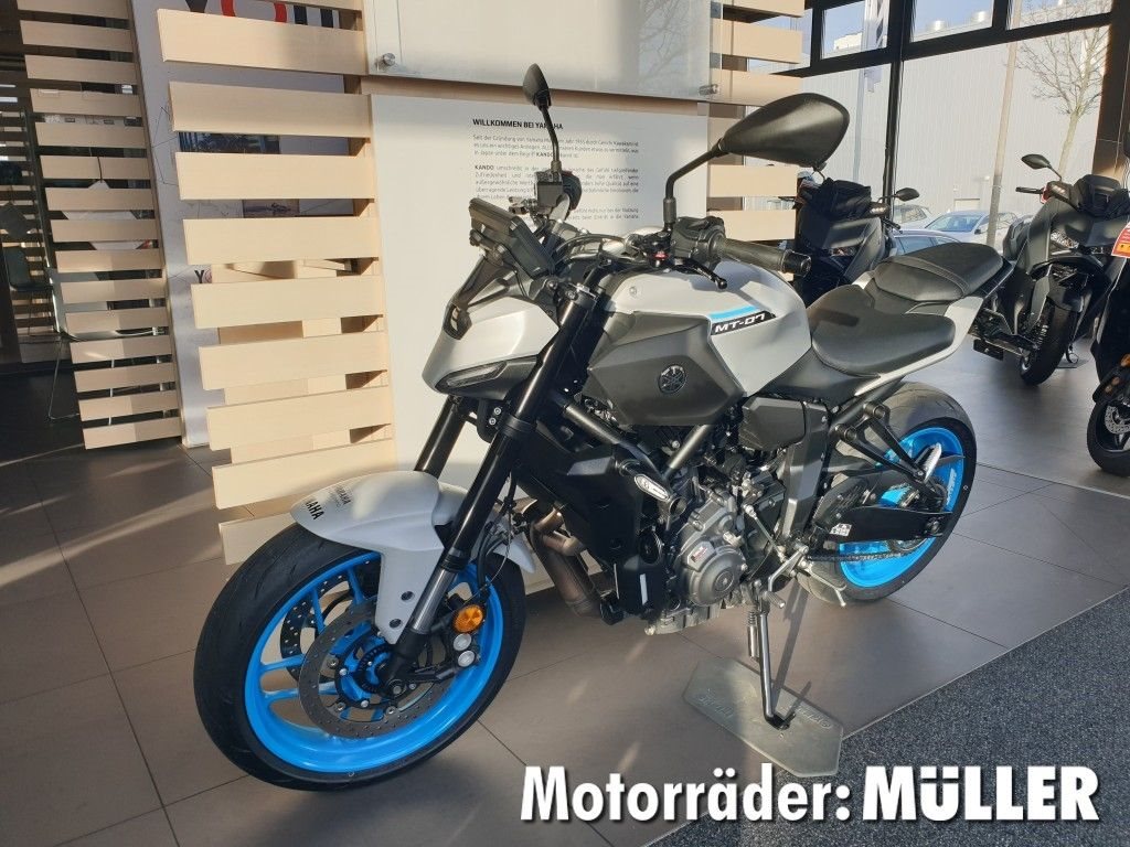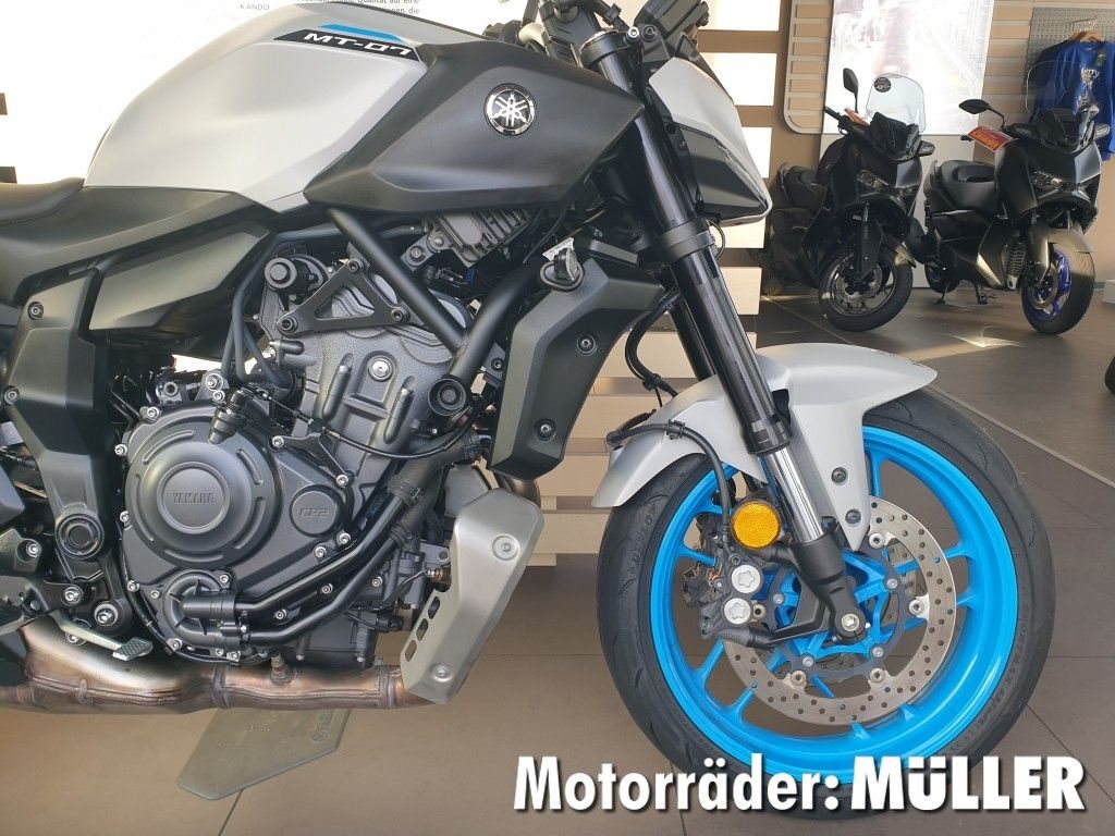- Änderungen, Zwischenverkauf und Irrtümer vorbehalten. Die neueste Version der MT-07 bietet die bisher beste Ausstattung. Dazu zählen radial montierte Bremszangen vorn, eine Upside-Down-Gabel mit 41 mm Durchmesser und leichte SpinForged-Räder. Das Ergebnis ist ein Motorrad mit verbesserter Agilität. Das innovative Sound-Engineering optimiert das Ansauggeräusch und entfesselt das berühmte CP2-Grummeln, das für den bisher fesselndsten und beeindruckendsten Fahrspaß sorgt. Der kompakte, neue Look verkörpert perfekt den zurückhaltenden Charakter der MT-07, mit einer überarbeiteten und souveräneren Sitzposition und einer unverwechselbaren Identität, die von der minimalistischen LED-Scheinwerfereinheit bestimmt wird. Technik und Design stehen in perfekter Harmonie. Nichts wurde an der MT-07 hinzugefügt, was nicht wirklich zum Fahrerlebnis beiträgt. Das Ergebnis ist ein Motorrad, das leichtfüßig und kraftvoll ist und die Attitüde von "The Dark Side of Japan" auf ein ganz neues Niveau bringt.