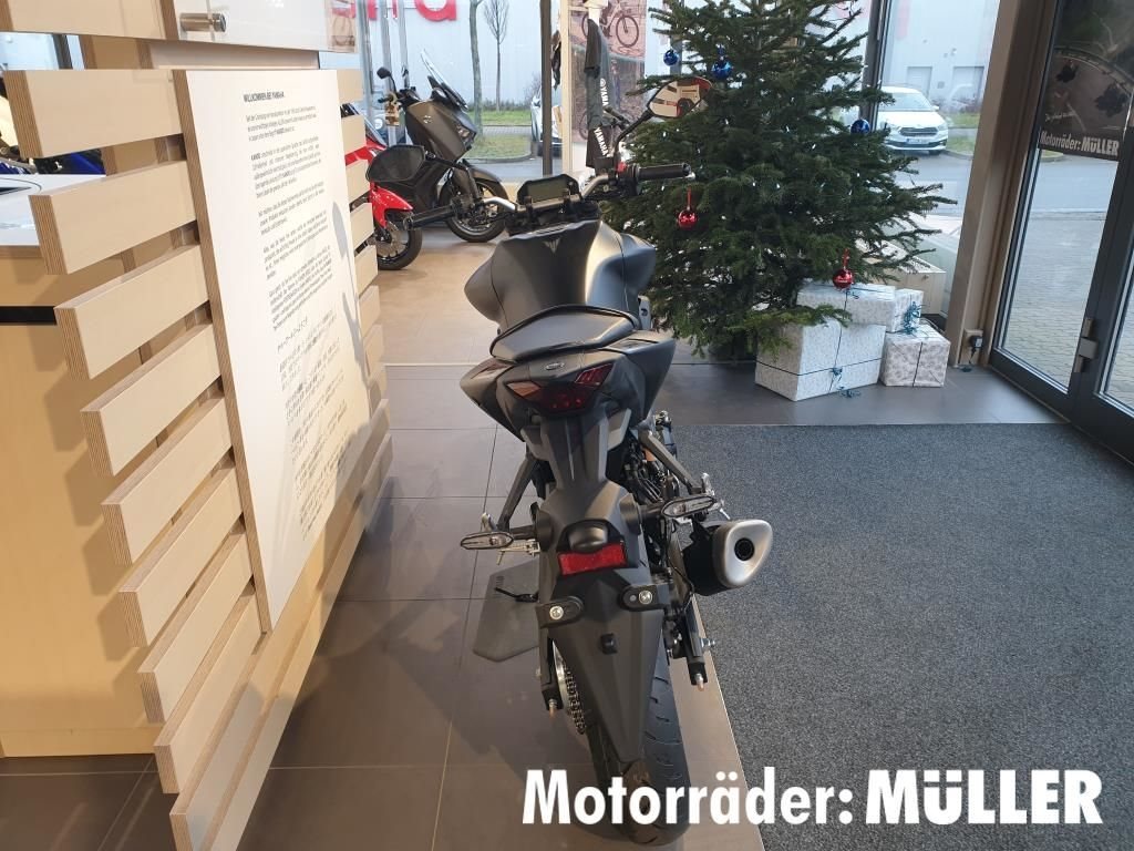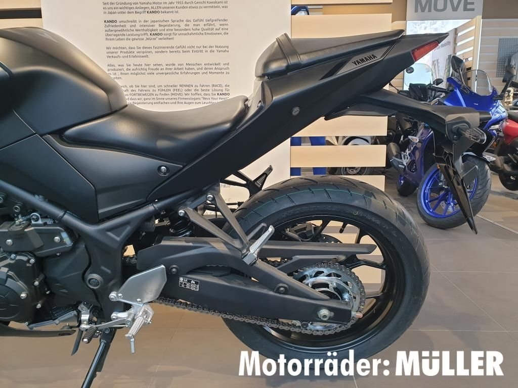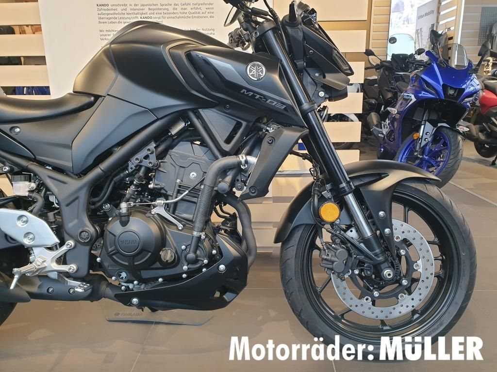 - Änderungen, Zwischenverkauf und Irrtümer vorbehalten. Dunkler Blitz mit Strahlkraft. Ride the black Lightning: Die MT-03 vereint kraftvolles Design und leistungsorientierte Yamaha Technologie - und schafft damit den Spagat zwischen Big Bike-Status und leichtgewichtiger Flexibilität. Dank des drehmomentstarken Zweizylinder-Motors mit 321 ccm Hubraum und der hervorragenden Handling-Eigenschaften erlebt man bei jeder Spritztour ein unvergleichliches Fahrgefühl mit absolutem Suchtpotenzial. Das raubtierartige "Zwei-Augen-Face" sorgt in Verbindung mit der Upside-down-Gabel und dem breiten Kraftstofftank für den markanten MT-Look, der diese begeisternde Hyper Naked-Maschine zur ultimativen 300er macht!