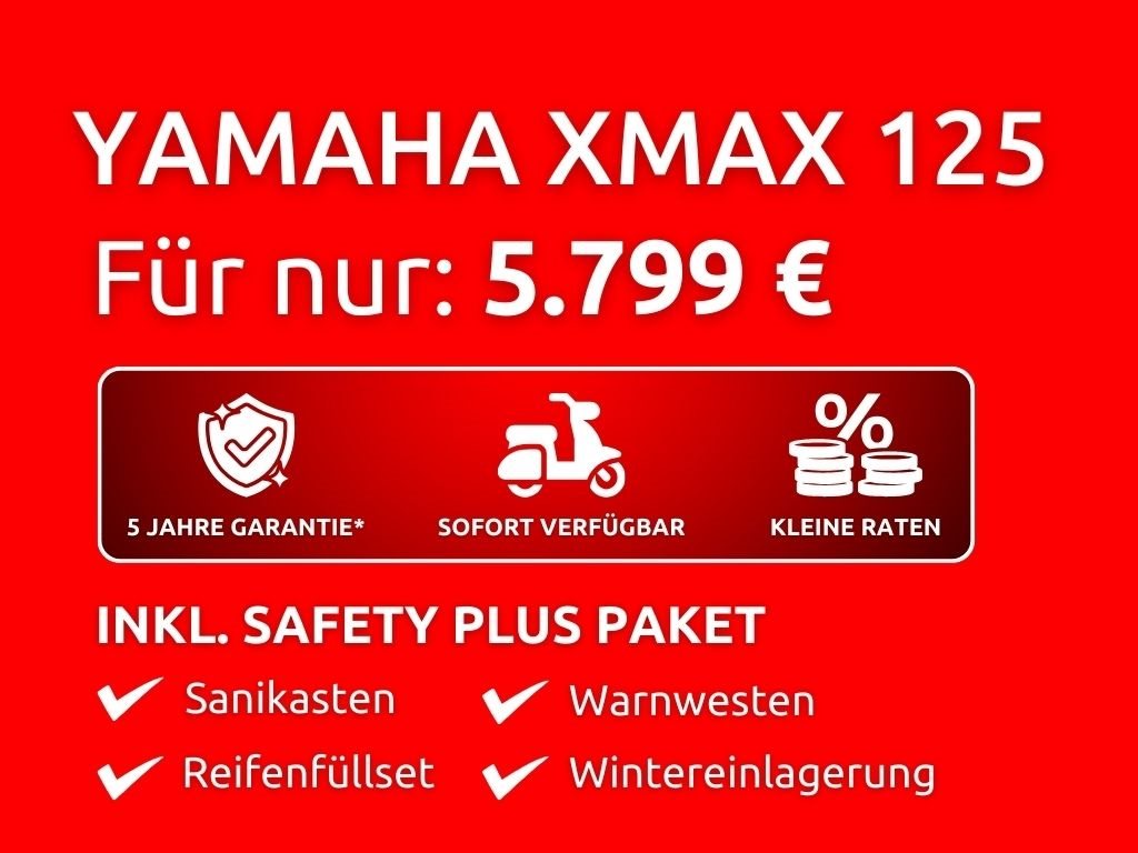 - Änderungen, Zwischenverkauf und Irrtümer vorbehalten. Angetrieben von einem kraftvollen und kraftstoffeffizienten 125 cm EURO5+ Motor mit vollautomatischem Getriebe, ist der XMAX 125 bestens für den täglichen Weg zur Arbeit gerüstet. Das ABS und die Traktionskontrolle sorgen für zusätzliches Vertrauen auf rutschiger Fahrbahn. Und mit dem vernetzten 4,3 Zoll großen LCD-Cockpit ist es einfach, auf dem Laufenden zu bleiben. Ein Start-Stopp-System verbessert die Kraftstoffeffizienz und minimiert die Emissionen und für die Stromversorgung deiner Geräte gibt es ein USB-Typ-C-Ladegerät. Das große Staufach unter der Sitzbank bietet Platz für zwei Helme*. Für zusätzlichen Komfort und Sicherheit ist der XMAX 125 mit der schlüssellosen Bedienung per Smart Key ausgestattet. (*Abhängig von ihrer Größe und Form.)